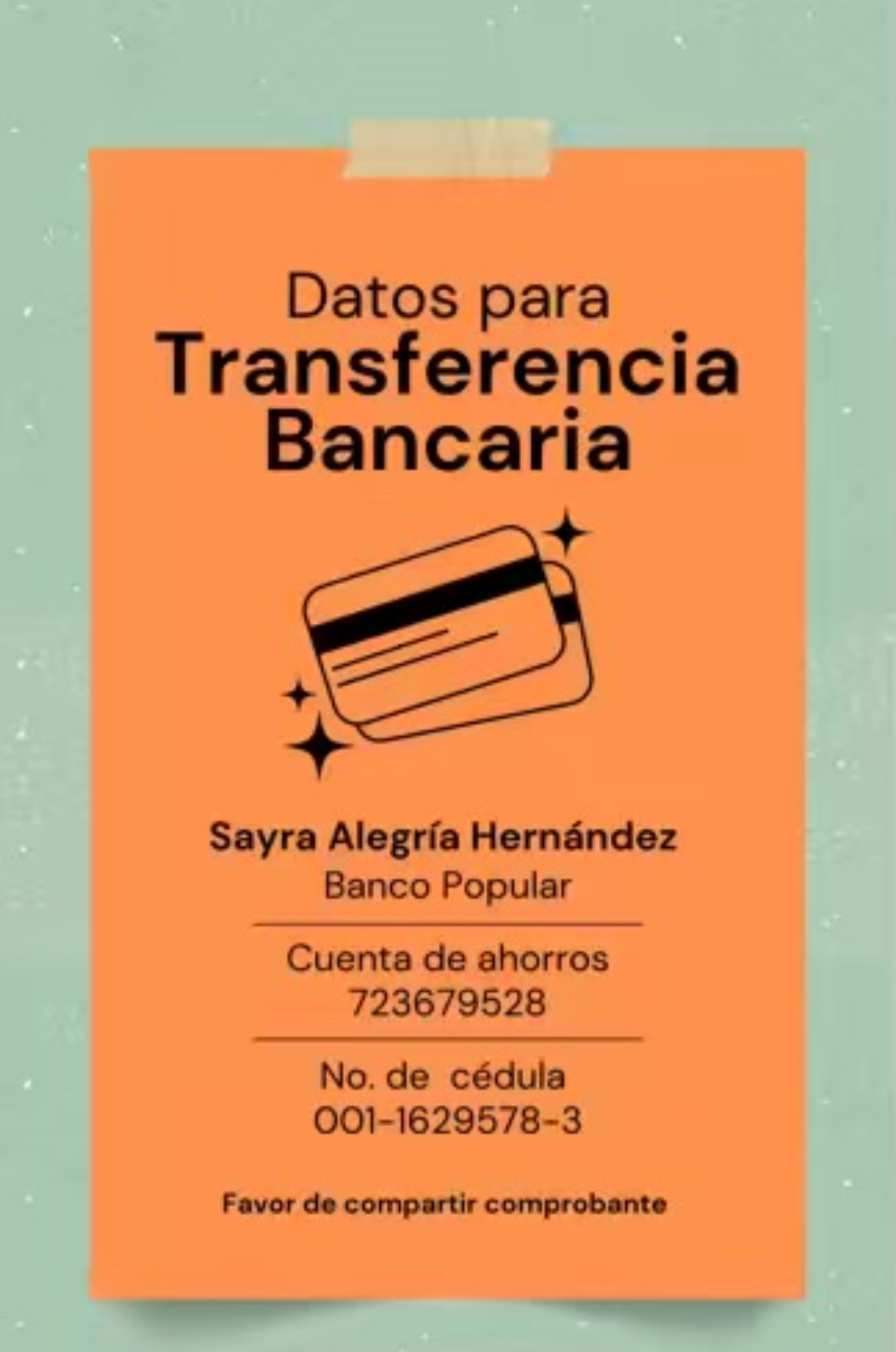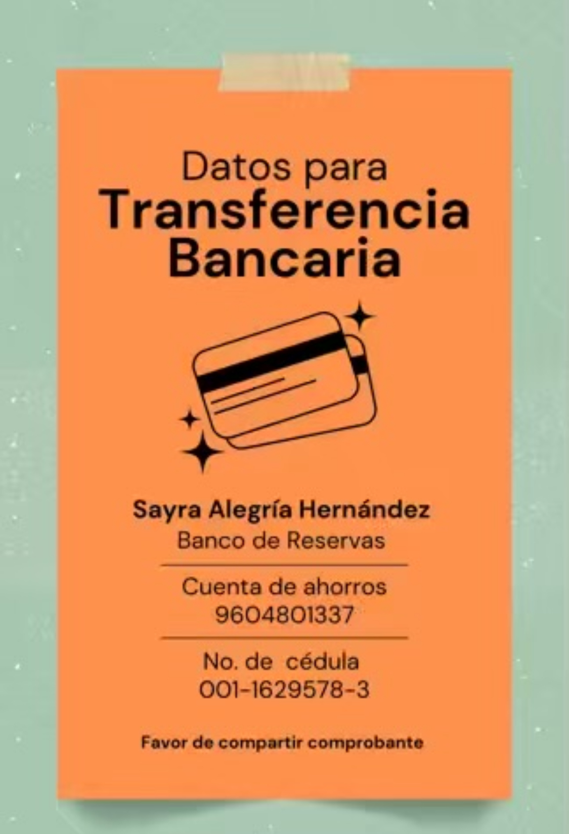 Aceptamos pagos mediante transferencias bancarias y tarjeta de crédito o débito.